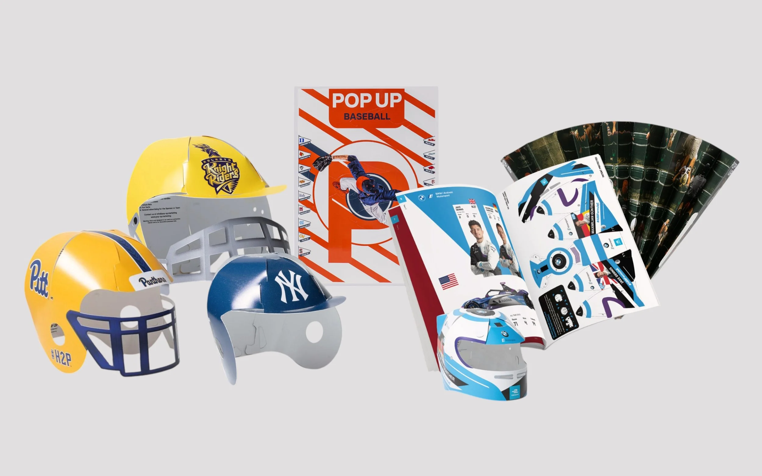 βPopUpβs helmets brought a brand new product to the second year of The Hundred. Sustainable & visibly fun, these card helmets were an instant origami success!